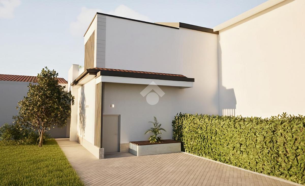 L’ingresso indipendente dal vialetto privato conduce a un delizioso giardino esclusivo con portico, perfetto per colazioni all’aperto e momenti di relax.