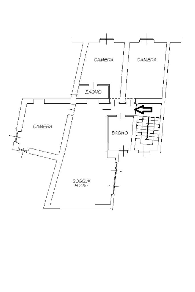 L’ingresso, riservato e indipendente, si trova al piano terra e conduce a una scala interna che porta al primo piano, dove si sviluppa l’intera abitazione.