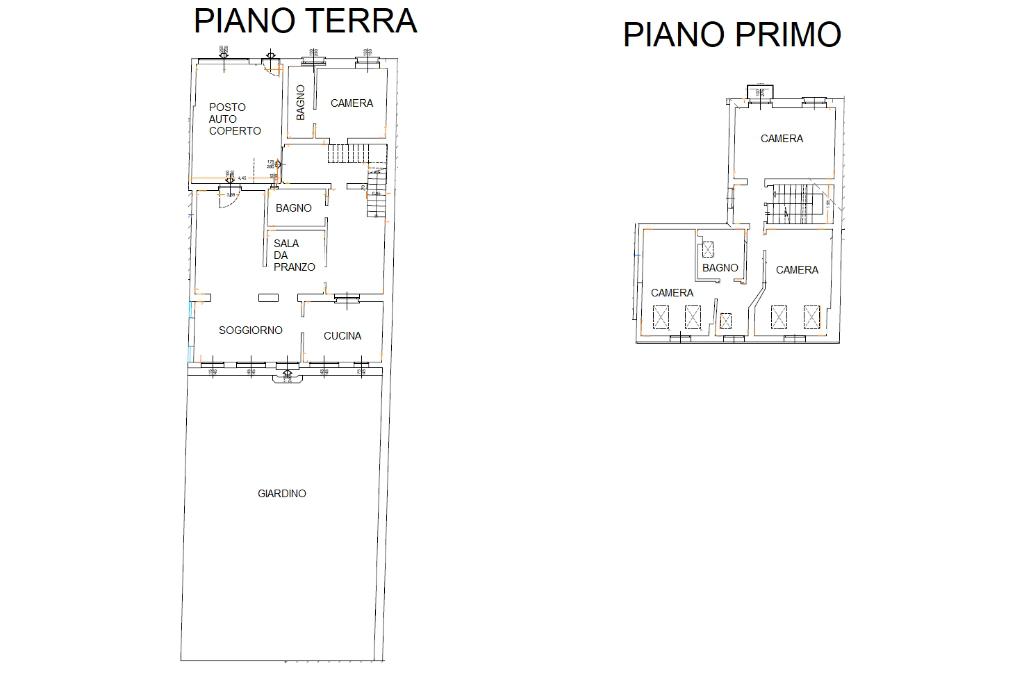 La zona notte, raggiungibile tramite scala interna, ospita tre camere da letto ben proporzionate e un bagno finestrato con doccia, ideale per le esigenze di tutta la famiglia.