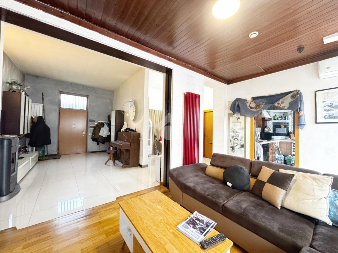 L’ingresso conduce a un ampio e luminoso soggiorno con vetrate, che regalano luce naturale durante tutta la giornata. La cucina è separata e ha accesso diretto al giardino privato, perfetto per pranzi all’aperto, relax e momenti in famiglia.